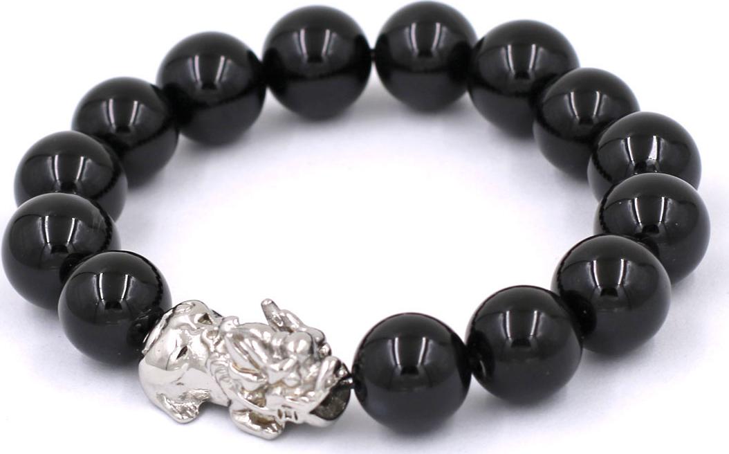✨Vòng tay chuỗi hạt đá thạch anh đen 12 ly - cẩn Tỳ Hưu inox VTAETHT12 - hợp mệnh Thủy, mệnh Mộc