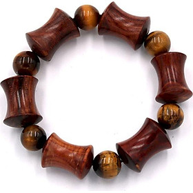 Kích thước : hạt gỗ hồng được khắc hình ống tre với kích thước 14mm x 20mm, kèm hạt đá mắt hổ 12 ly, vòng chuỗi dài 192mm