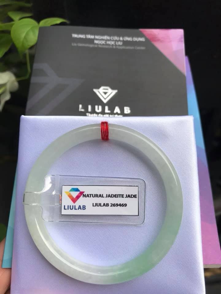 ✨Vòng Tay Đá Cẩm Thạch TR LÝ A 51mmx Dầy 6,5mm Kèm Giấy Kiểm định Liulab No 269469 Chất liệu đá cẩm thạch tự nhiên trắng Điểm Xanh Lý 1 Bên Nữ cân nặng 50kg - 56kg đeo ạ