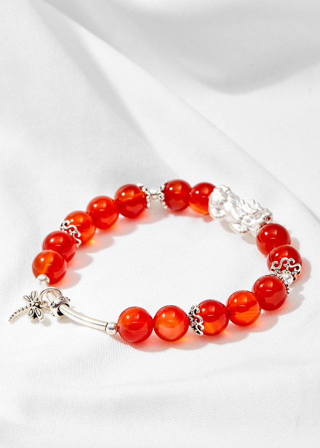 Vòng tay phong thủy Mã Não đỏ 6mm + 3 lu ngọc by ANQLO được chế tác 100% từ đá mã não tự nhiên, Đá mã não có tác dụng giảm căng thẳng, lo lắng,