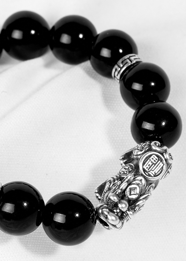 Vòng Tay Đá Obsidian Phối Charm Tỳ Hưu Bạc Ngọc Quý Gemstones