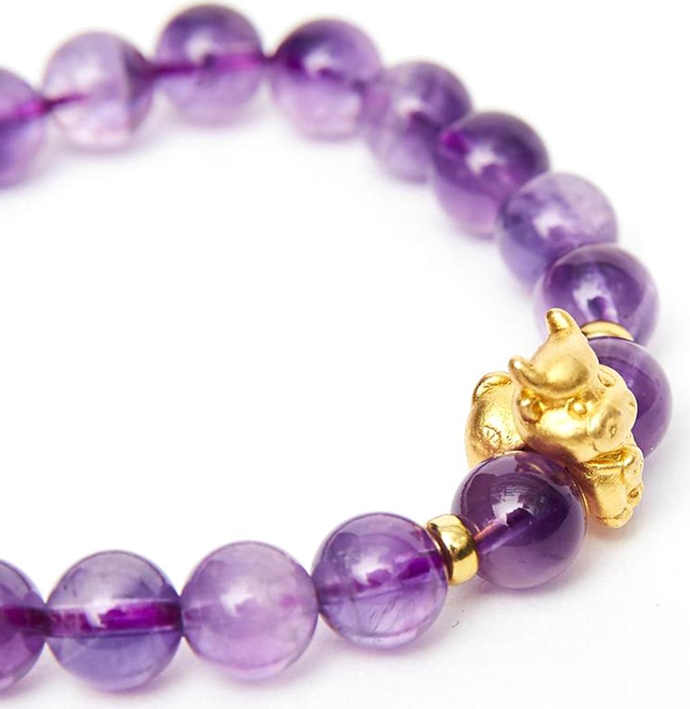 ✨Vòng tay đá thạch anh tím charm tuổi sửu bạc mạ vàng 24K 8mm mệnh hỏa, thổ - Ngọc Quý Gemstones