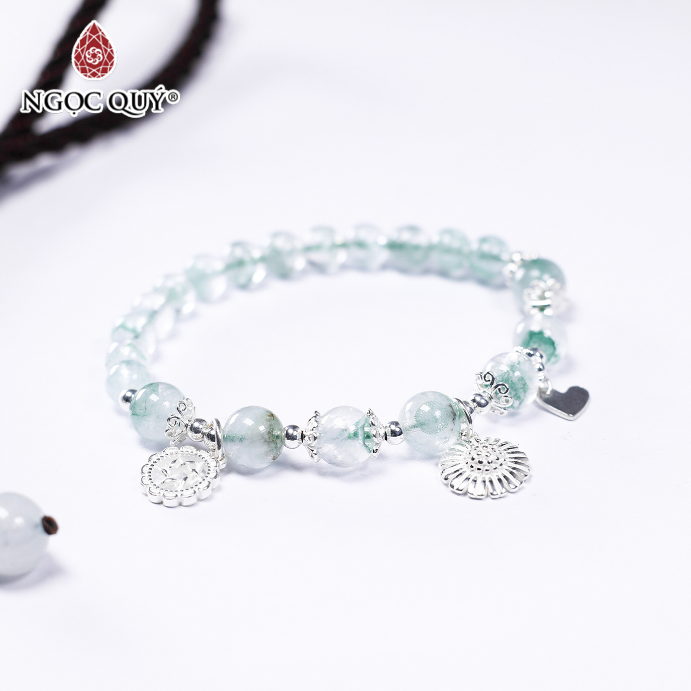 Vòng Tay Đá Thạch Anh Ưu Linh Xanh Phối Charm Hoa Cúc