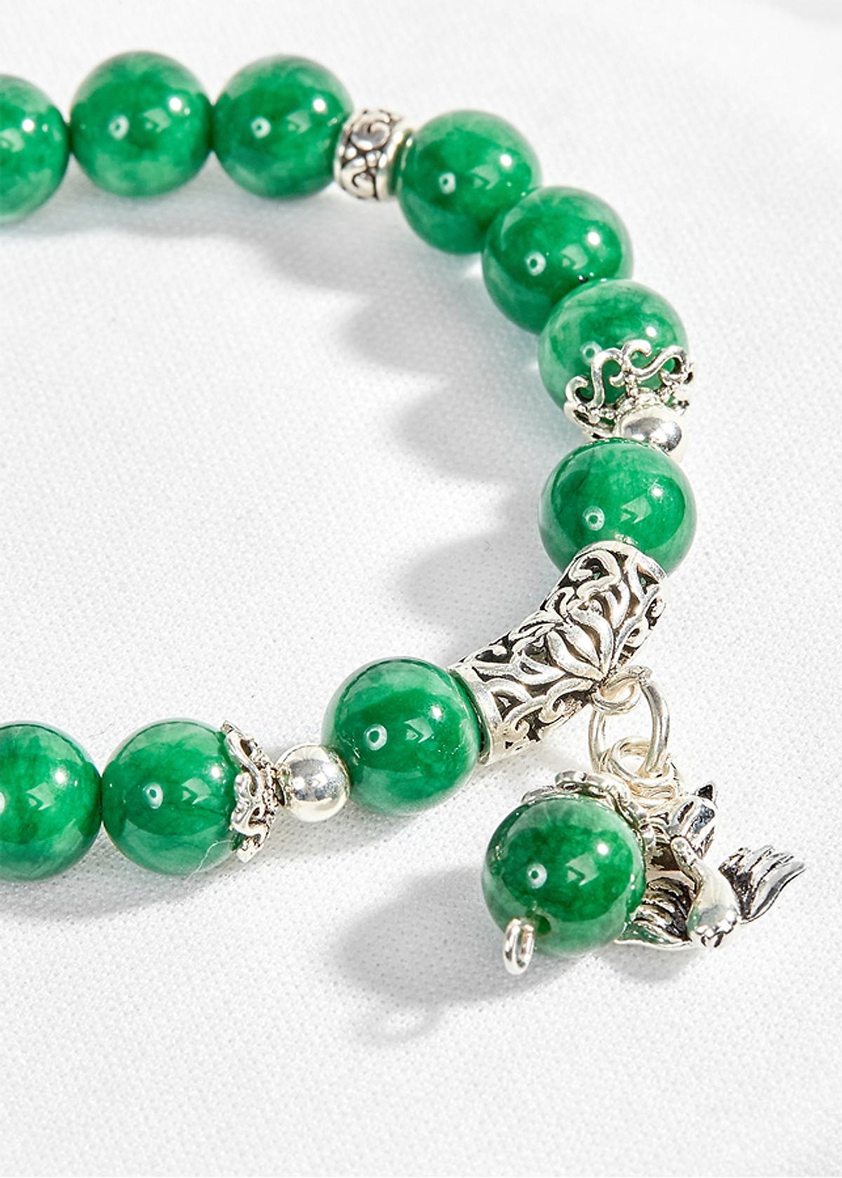 Vòng Tay Đá Ngọc Bích Mix Charm Bạc