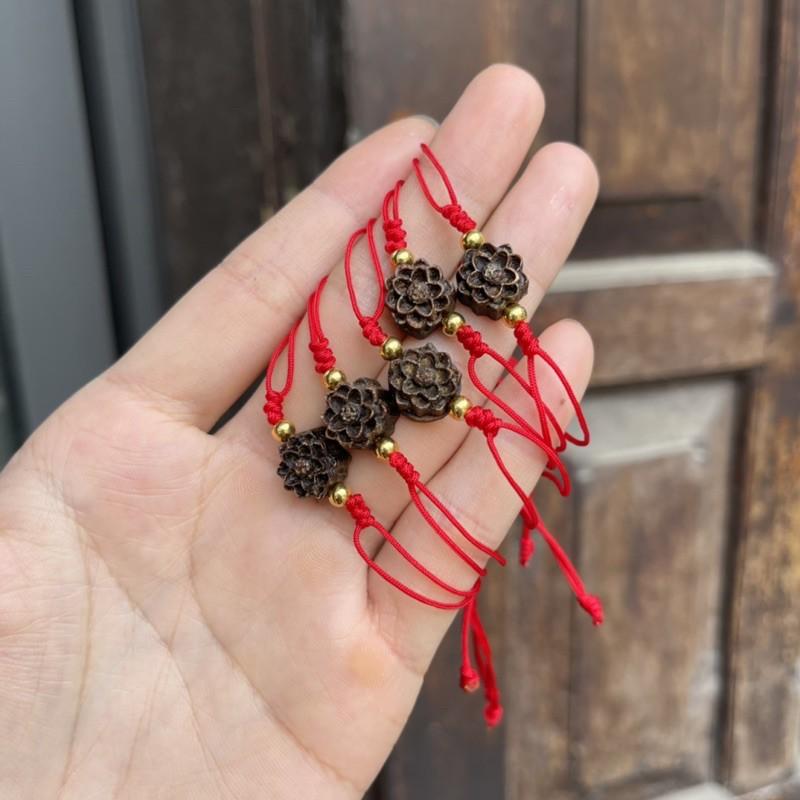 ✨Vòng Tay Hoa Sen Trầm Hương kết dây chỉ đỏ may mắn, bình an