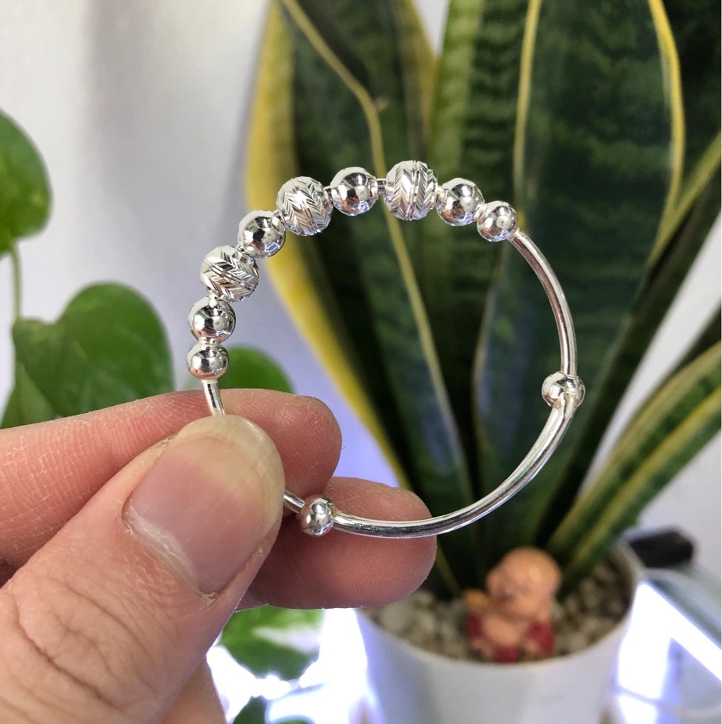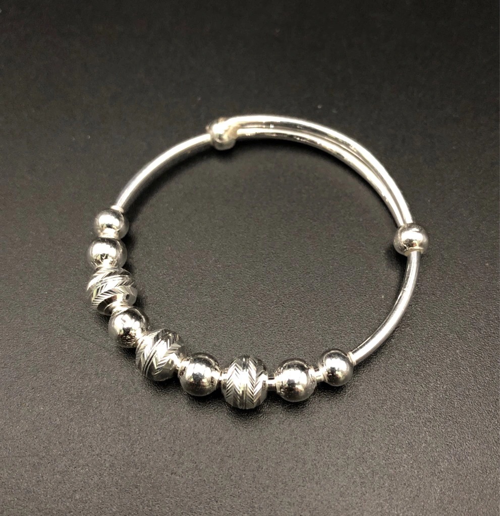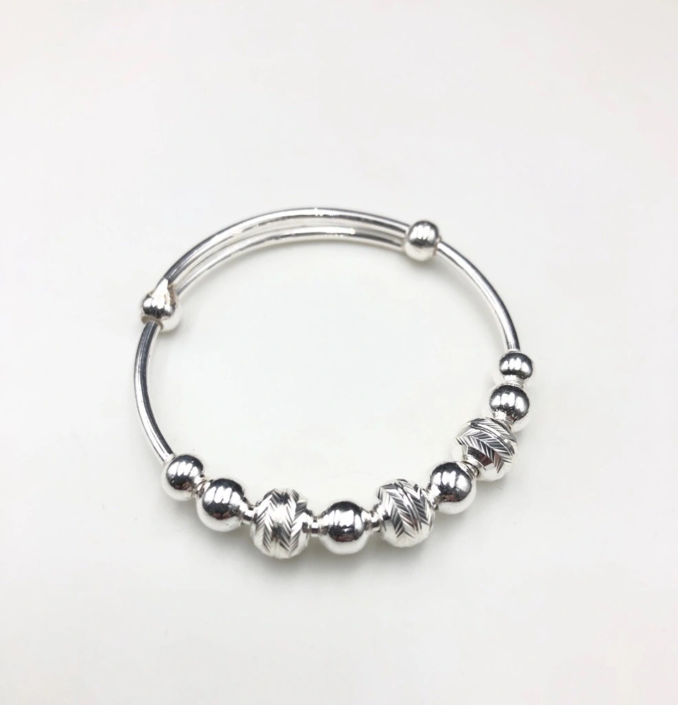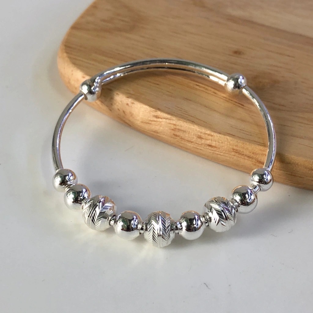 Vòng Tay Lắc Tay Cho Bé Bạc Ta Hình Bi Phay Free Size BẠC HIỂU MINH LTE530