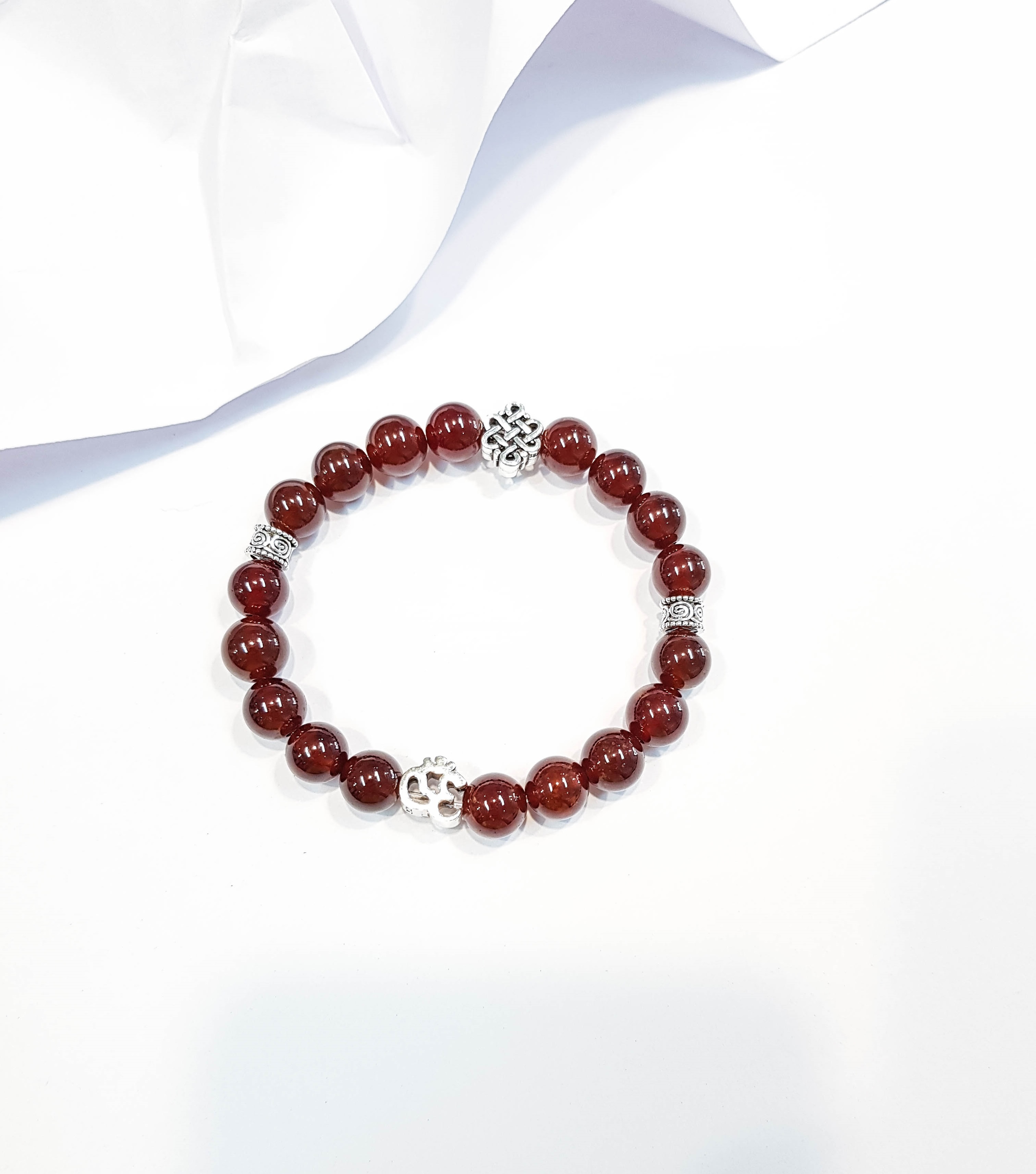 Đá Garnet cũng đại diện cho sức mạnh, sự dũng mãnh và niềm tin trong cuộc sống nên khi mang chiếc vòng này bên người sự mạnh mẽ gia tăng và luôn mang lại cảm giác yên tâm khi ở đâu hay làm bất cứ việc gì.