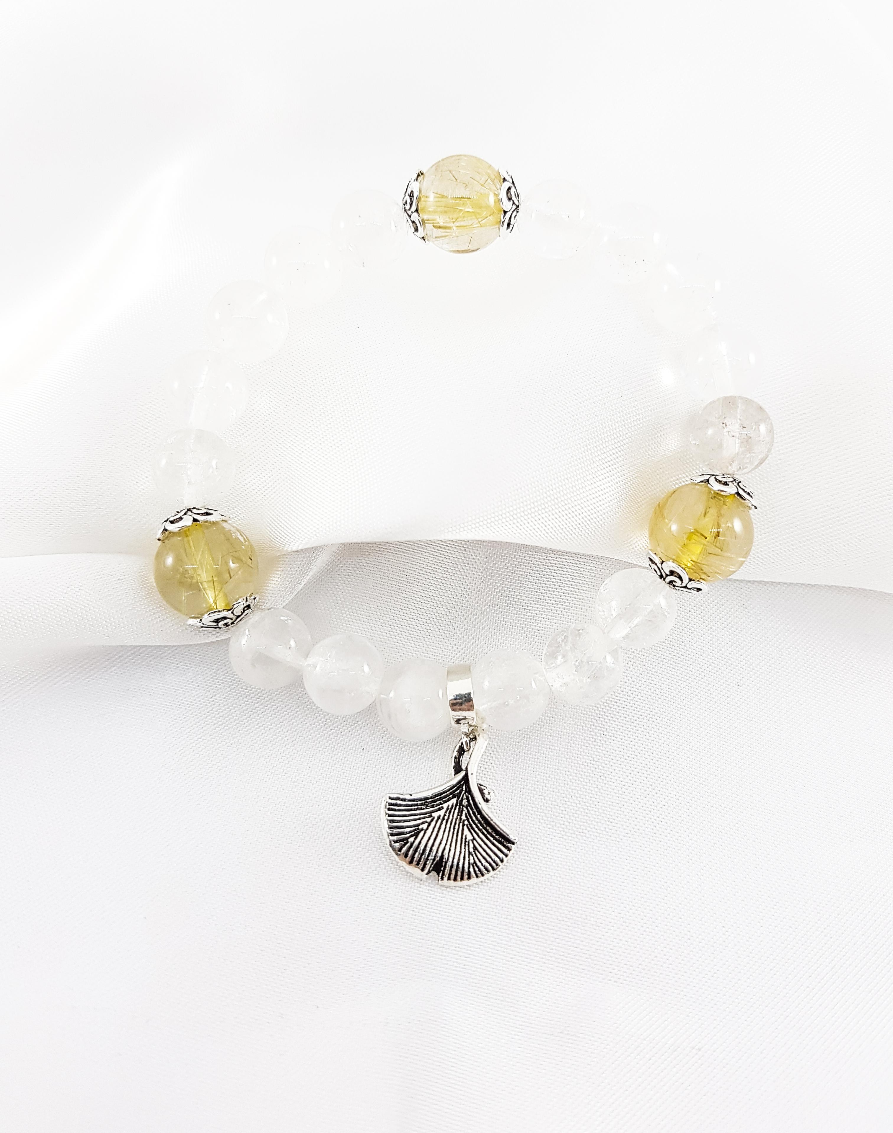 Vòng tay 2line đá thạch anh tóc vàng & ưu linh trắng phối charm | Ngọc Quý Gemstones |