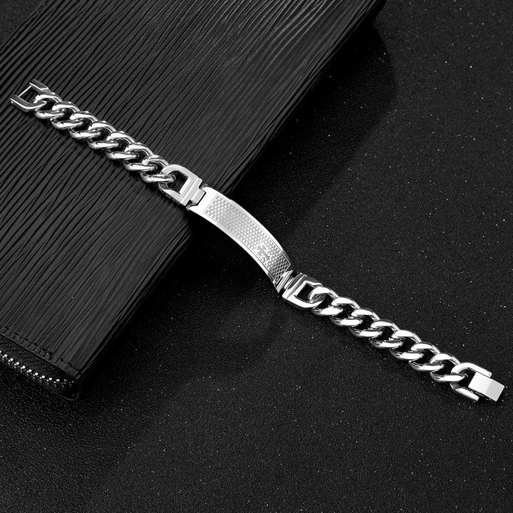 Vòng tay nam mặt chữ nhật chấm ca rô hình thập giá MST91 (Trắng)