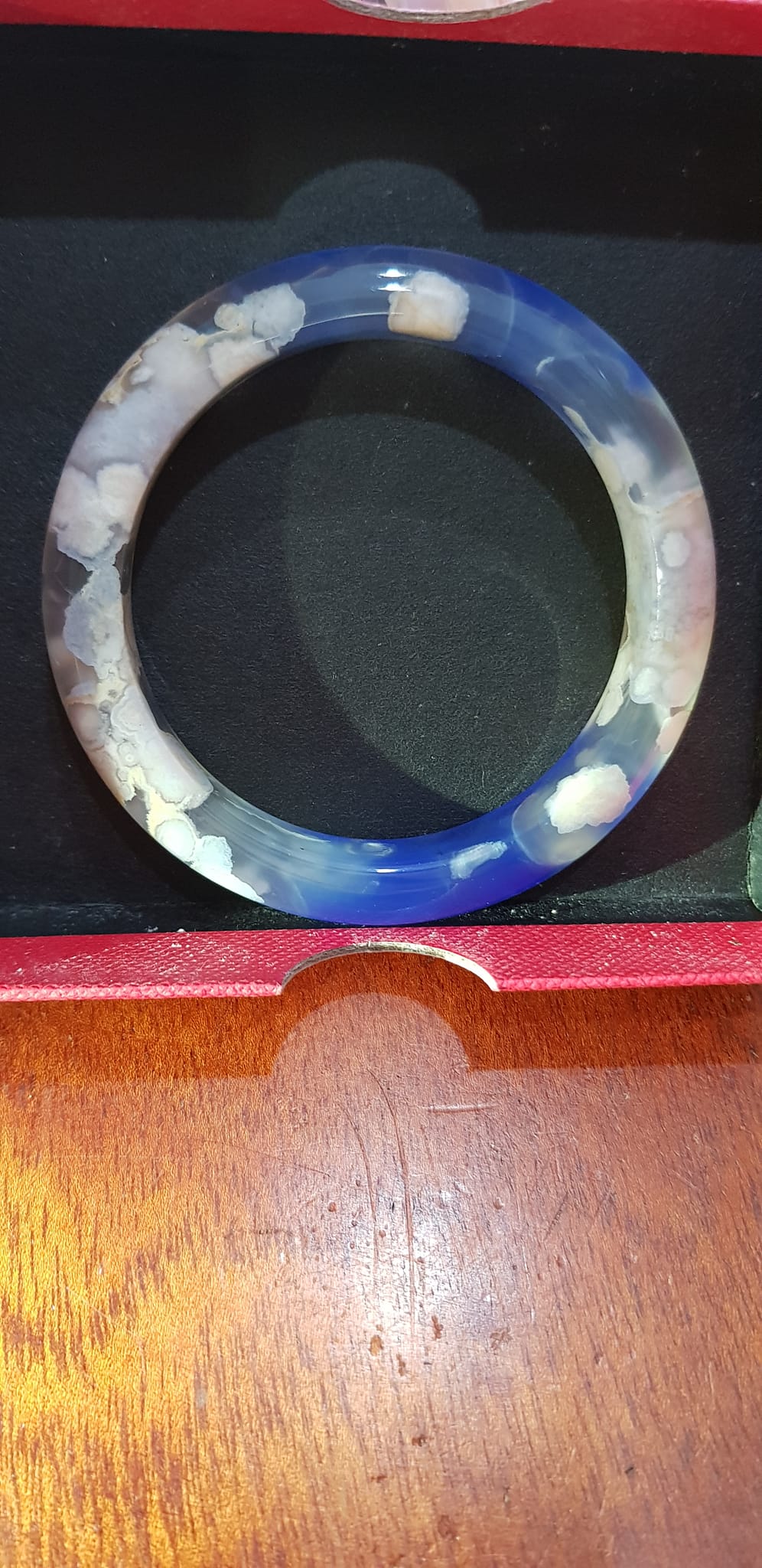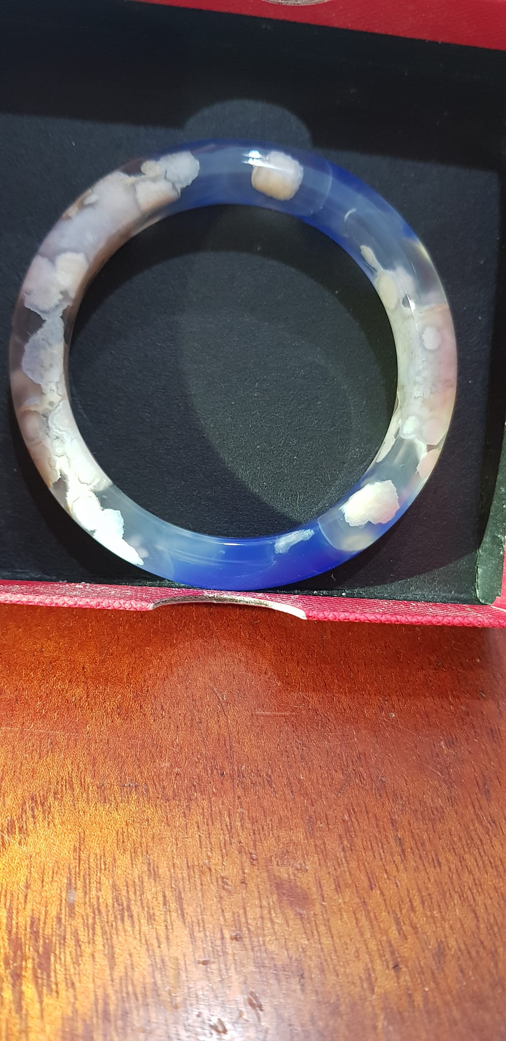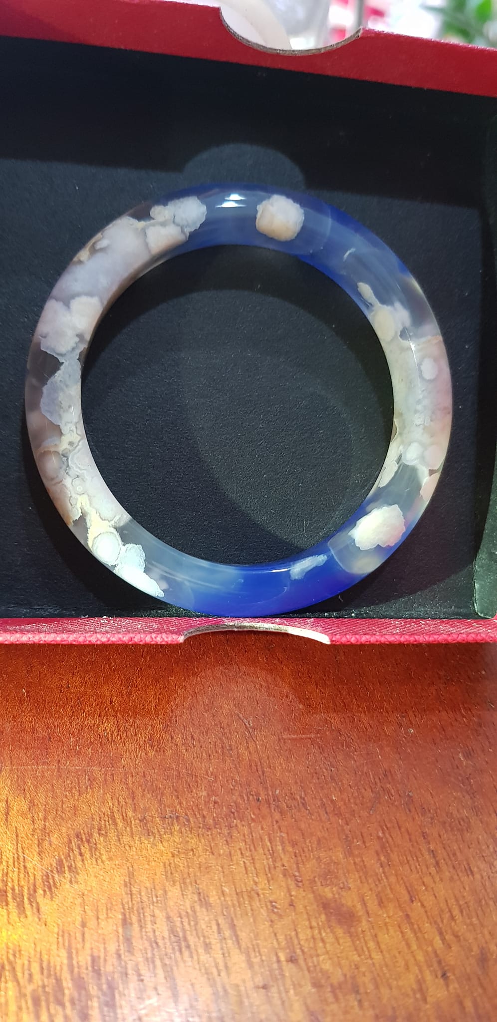 Vòng tay Nữ Bản Hẹ Đá Mã Não Xanh Dương Đậm Bông Bông đều 2 bên vòng quá đẹp Vòng tay Ni 49mm x Cao 11mm x dầy 8mm Nữ mệnh Thủy mệnh mộc 35kg - 48kg đeo ạ