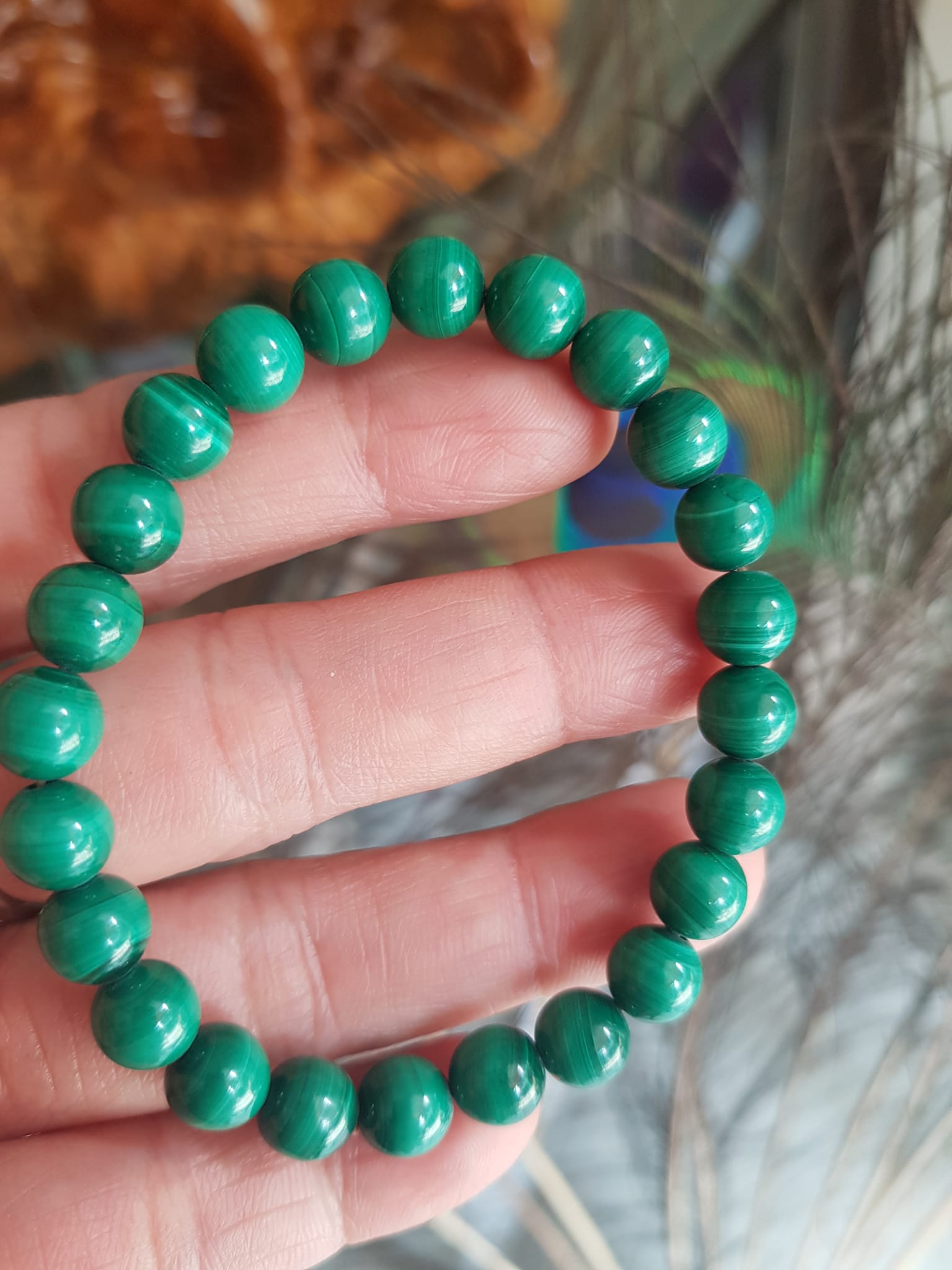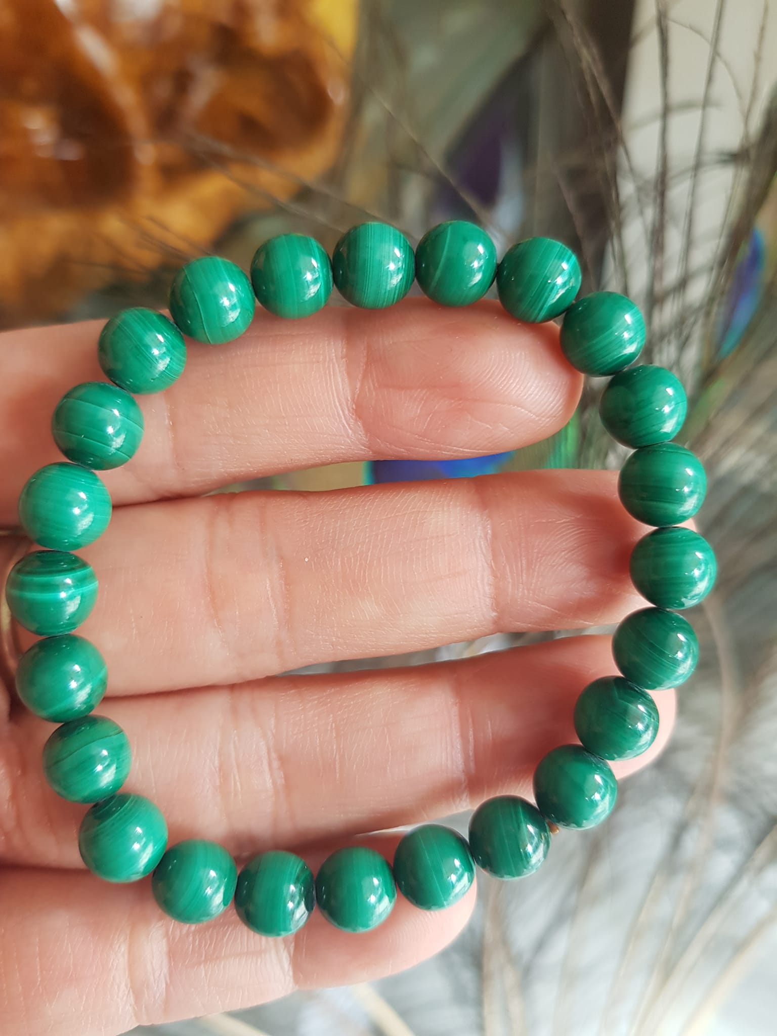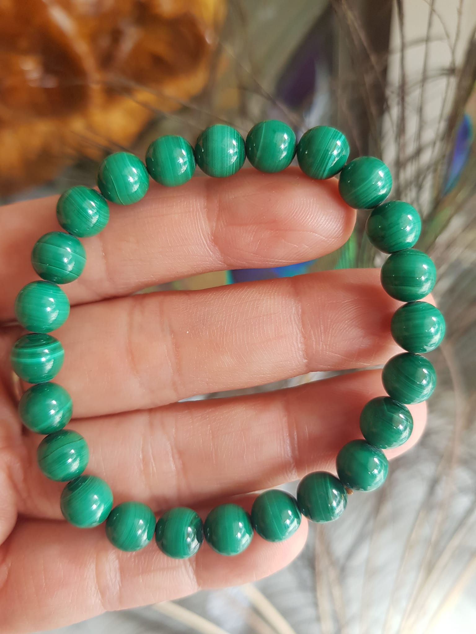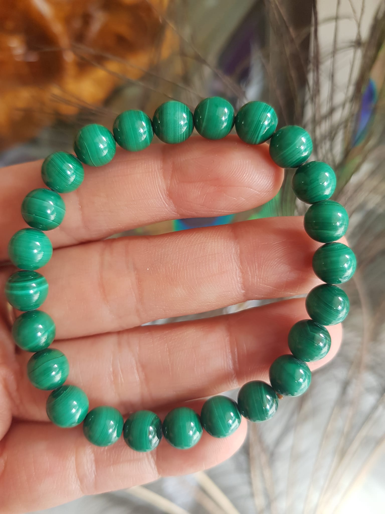 ✨Vòng Tay Phong Thủy Đá Lông Công hay gọi là đá Malachite tự nhiên bóng đẹp Size vòng 7,5mm nữ mệnh Mộc mệnh Hỏa Vòng Xanh Đá Lông Công Vân tự nhiên đẹp đeo tốt sức khỏe, đẹp, may mắn trong công việc ạ