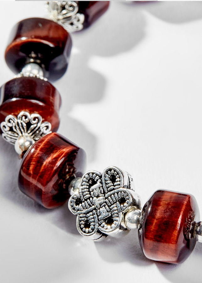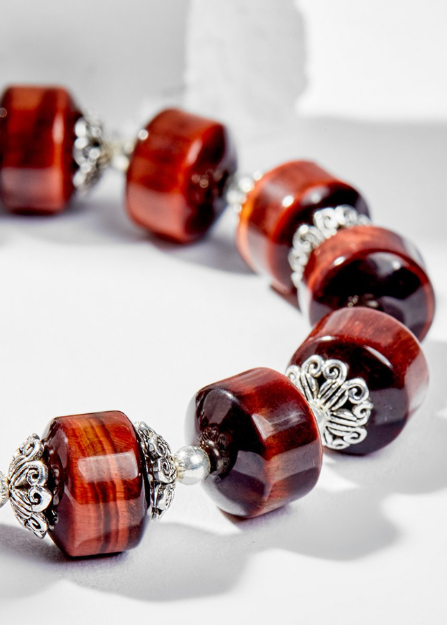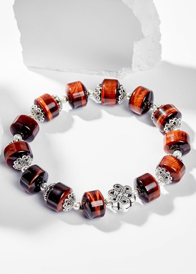 Từ xưa đến nay đá mắt hổ nâu đỏ được ví như viên đá đại diện cho Mặt Trời, tượng trưng cho sự mạnh mẽ và lòng can đảm, gột rửa tâm hồn, là người dẫn đường đúng đắn luôn theo sát bên bạn. Giúp Thu hút tài lộc và may mắn, đặc biệt là trong lĩnh vực kinh doanh. Vòng Tay Phong Thủy Đá Mắt Hổ Nâu Đỏ Phối Charm Kết Đồng Tâm (12mm) Mệnh Hỏa, Thổ được làm từ đá mắt hổ nâu đỏ.