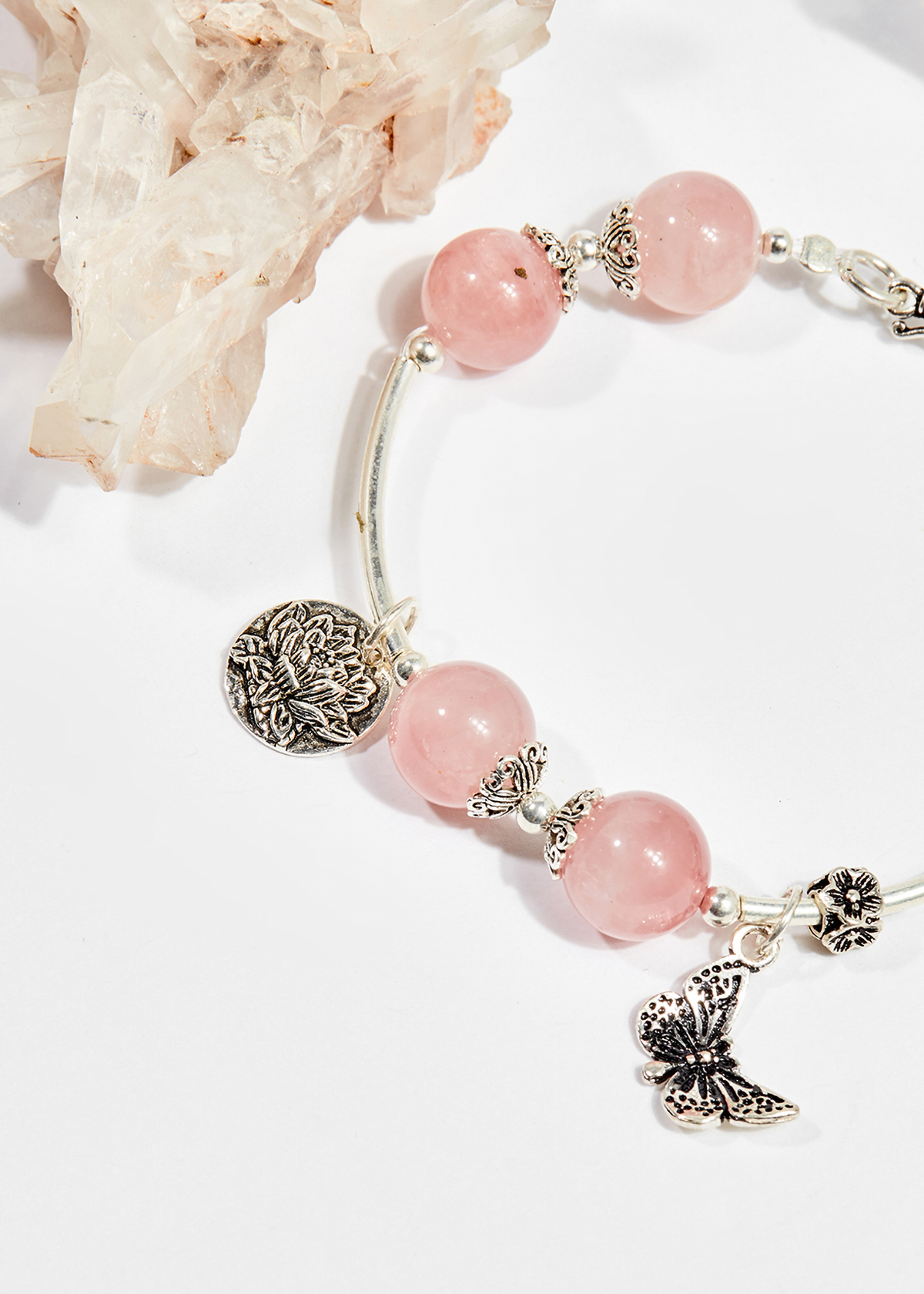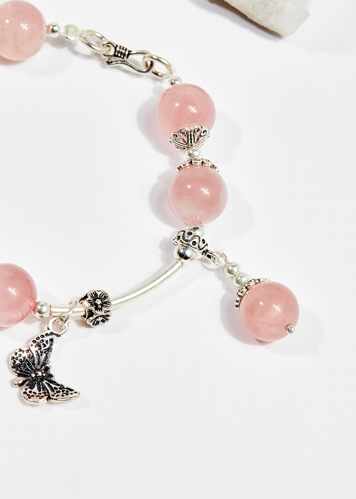 Vòng tay đá Thạch Anh Hồng charm Sen Bạc mang nét đẹp nhẹ nhàng, nữ tính và hết sức duyên dáng, giúp người phụ nữ trở nên nổi bật và ấn tượng hơn trong mắt những người xung quanh.