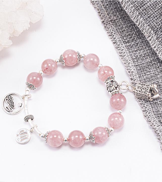 Vòng Tay Phong Thủy Đá Thạch Anh Hồng Phối Charm Đèn Lồng Bạc (10mm) Mệnh Hỏa, Thổ