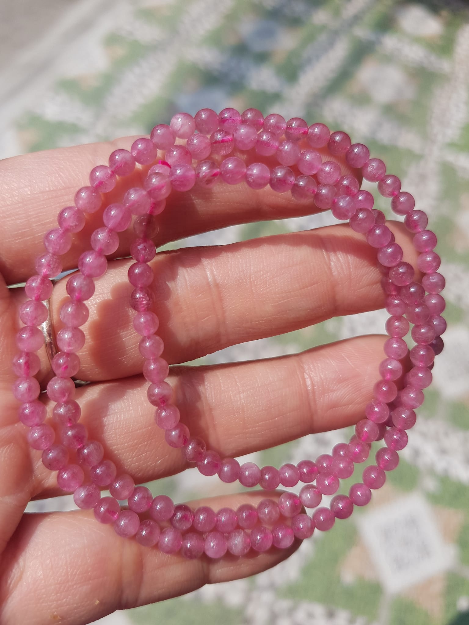 ✨Vòng Tay Phong Thủy Đá Tourmaline hồng hồng xinh đẹp nhẹ nhàng quyến rũ Size vòng 4mm đeo kiểu quấn tay 3 vòng rất xinh xắn Chuẩn hợp nữ mệnh Hỏa và mệnh Thổ ạ