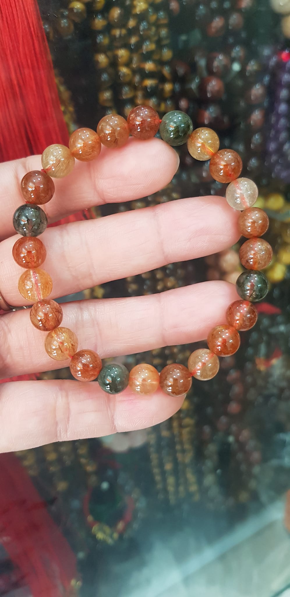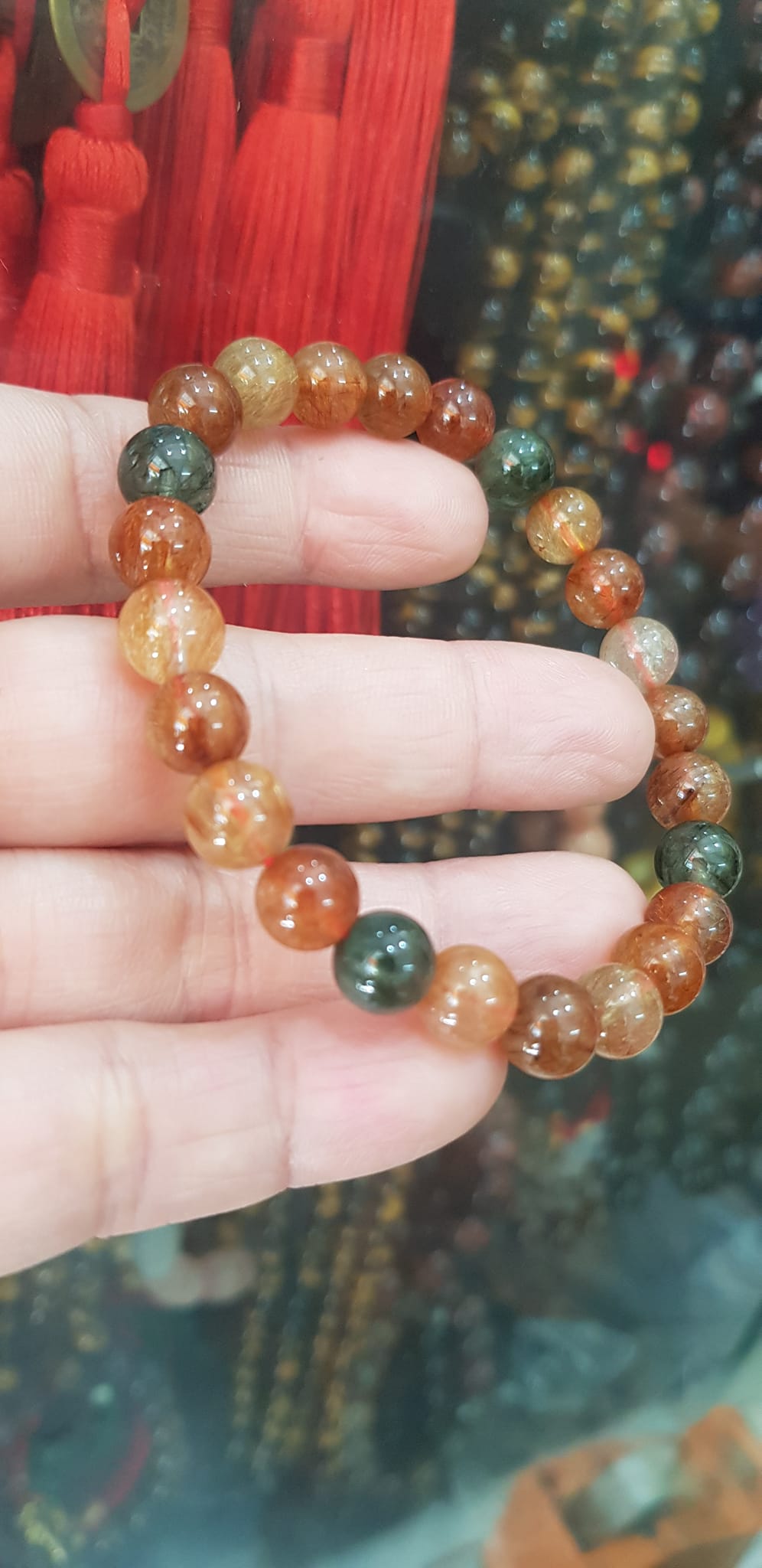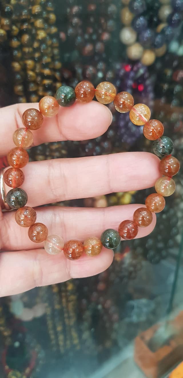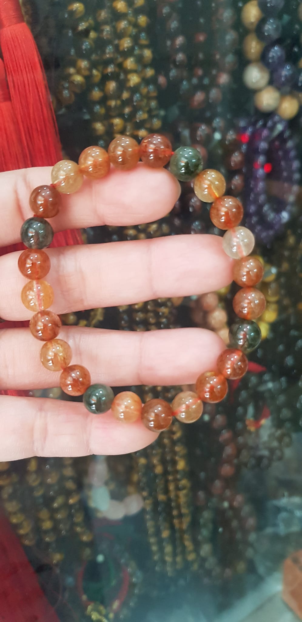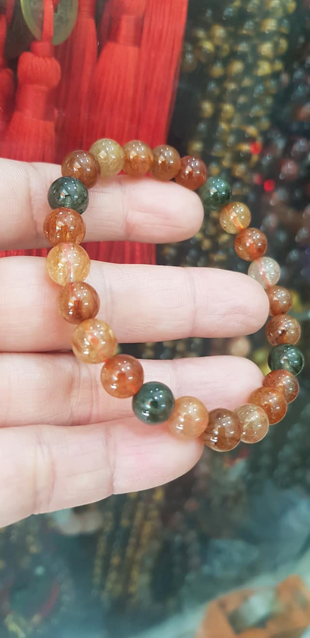 ✨ Vòng tay phong thuỷ may mắn đá thạch anh tóc tam tài màu bóng đẹp lắm size hạt vòng 8mm đá tự nhiên đeo tốt sức khoẻ, may mắn, tốt cho công việc đeo lên tay bóng đẹp màu rất xinh đẹp ạ
