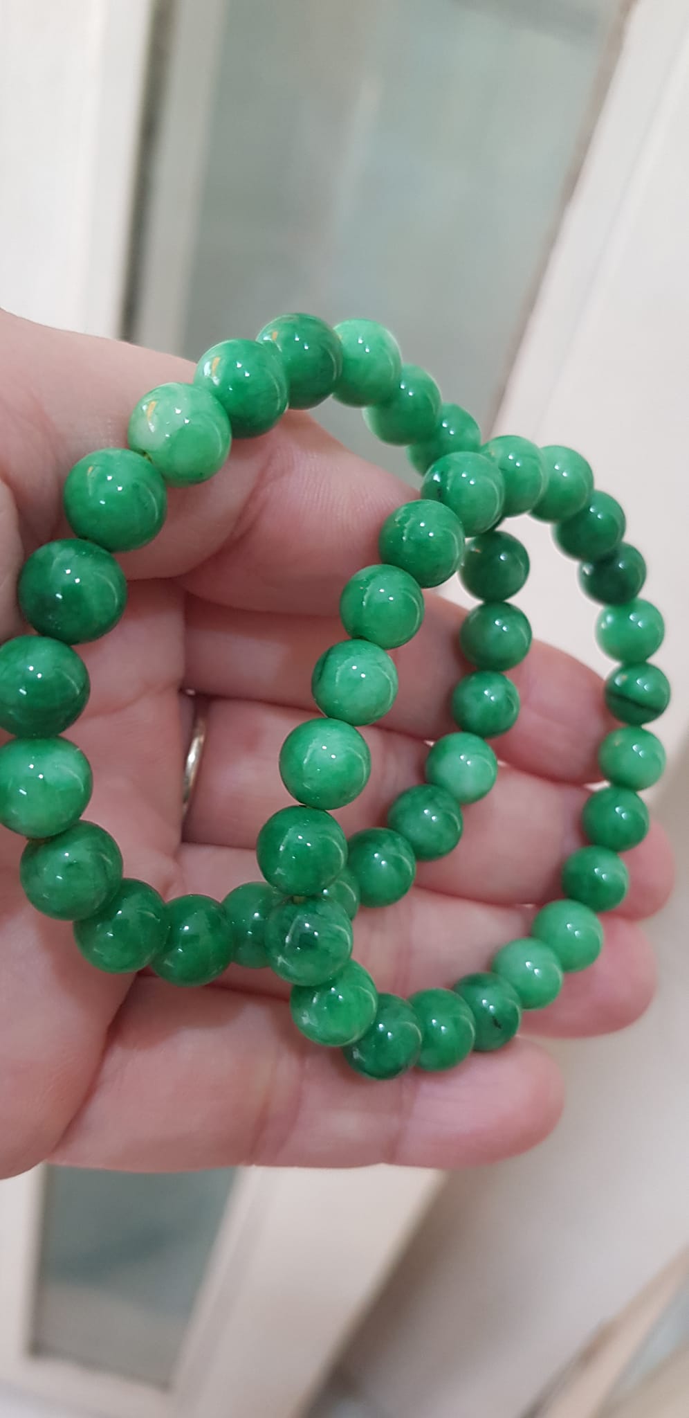 Vòng tay phong thủy đá cẩm thạch xanh tươi size hạt 8mm hay 8li màu xanh ngọc tươi trẻ đẹp