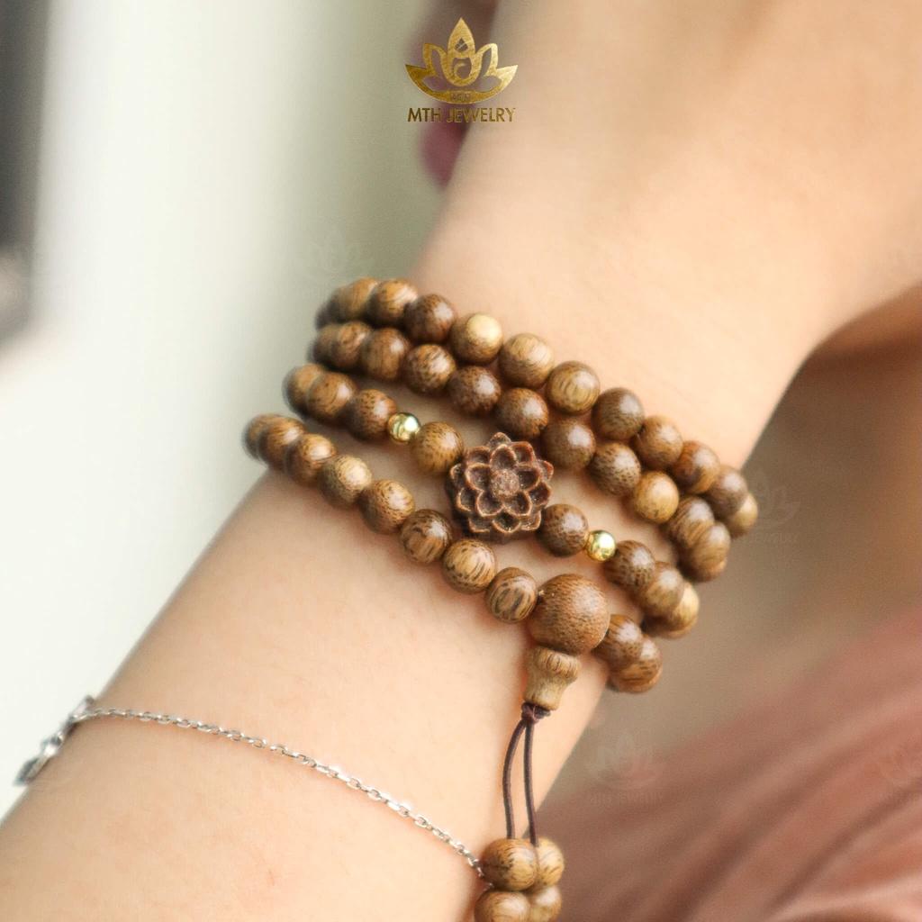 Vòng tay trầm tràng hạt 108 size 6/7/8/10mm đính Sen Gỗ Trầm Hương - Trầm Hương Tốc Việt Tự Nhiên sẽ được COMBO QUÀ TẶNG – HẤP DẪN:
