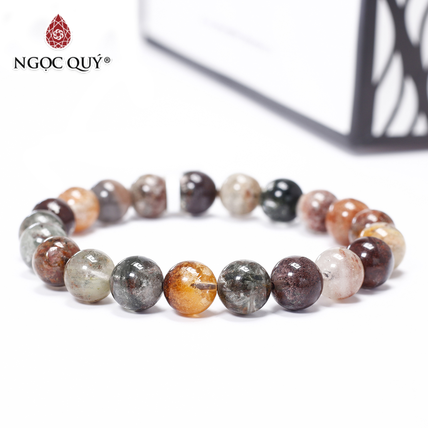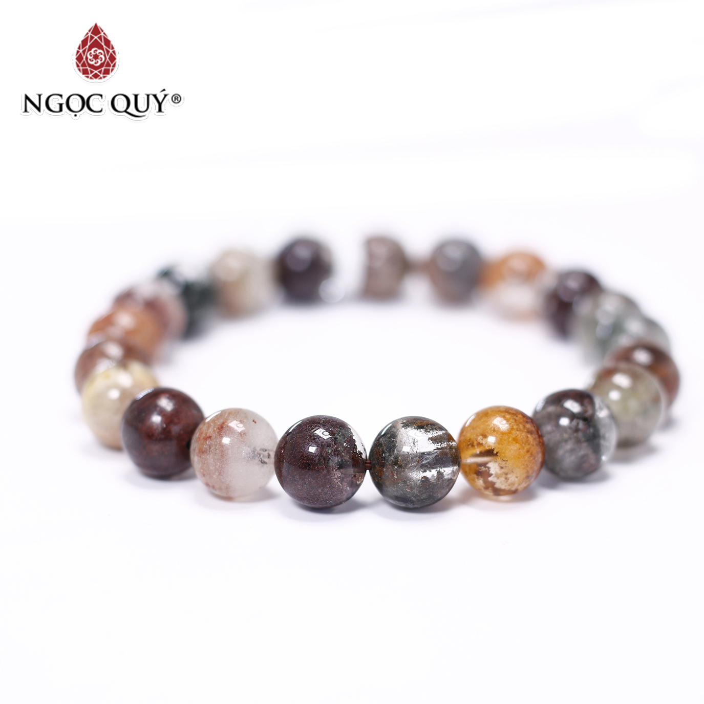 Vòng tay đá thạch anh ưu linh đa sắc phối charm - Hợp ngũ mệnh | Ngọc Quý Gemstones |