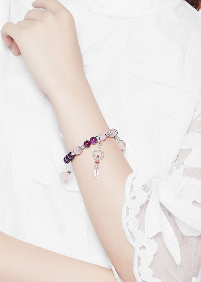 Vòng tay mix đá thạch anh tím & thạch anh hồng phối charm | Ngọc Quý Gemstones |