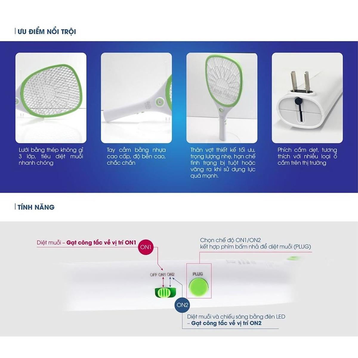 Vợt Muỗi Rạng Đông - Vợt Bắt Muỗi Kết Hợp Đèn Pin Tháo Rời Dễ Cắm Sạc - - Bảo Hành 1 Năm