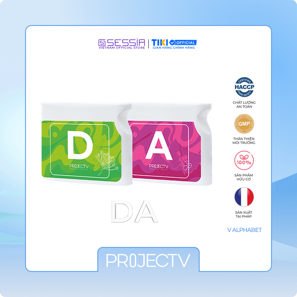 PROJECT V - V ALPHABET D+A | CÔNG THỨC CHỐNG OXY HOÁ CHO TẾ BÀO CƠ THỂ DA (D+A) – TÁI TẠO Phức hợp cải thiện chức năng làm sạch gan, tăng cường hệ thống miễn dịch và kéo dài tuổi thọ nhờ công thức chống oxy hóa. D (60 viên nang): Là sản phẩm giúp cải thiện chức năng làm sạch của gan, giảm
