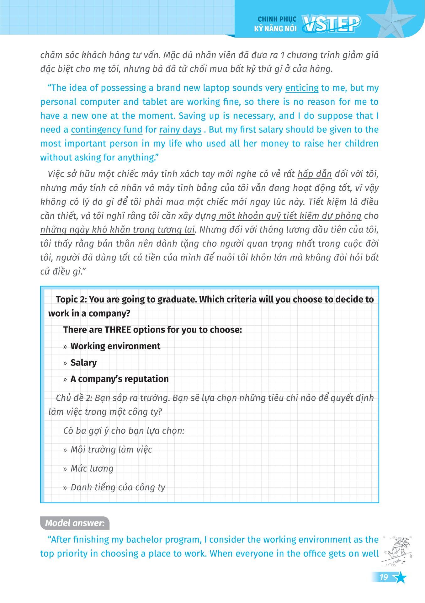 VSTEP - Chinh Phục Kỹ Năng Nói Bậc B1, B2+ Cuốn sách được chia thành 10 bài học, mỗi bài học tập trung vào 1 chủ đề người học thường gặp trong kì thi VSTEP.