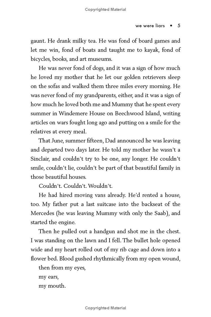 A beautiful and distinguished family. A private island. A brilliant, damaged girl; a passionate, political boy. A group of four friends—the Liars—whose friendship turns destructive. A revolution. An accident. A secret. Lies upon lies. True love. The truth.