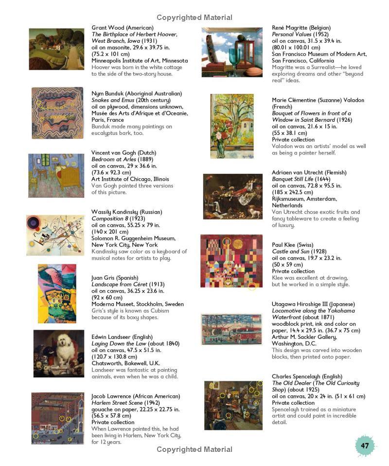 This simple, engaging introduction to art combines superb reproductions of an imaginative selection of artworks by artists ranging from Rousseau and Seurat to Lowry and Van Gogh. With beautifully pitched text supported by friendly cartoon-style illustrations, What's in the Picture? invites young children to search for particular objects or other detail in the paintings displayed. Further questions encourage children to examine each artwork and to explain, very simply, what is happening in the pictures.