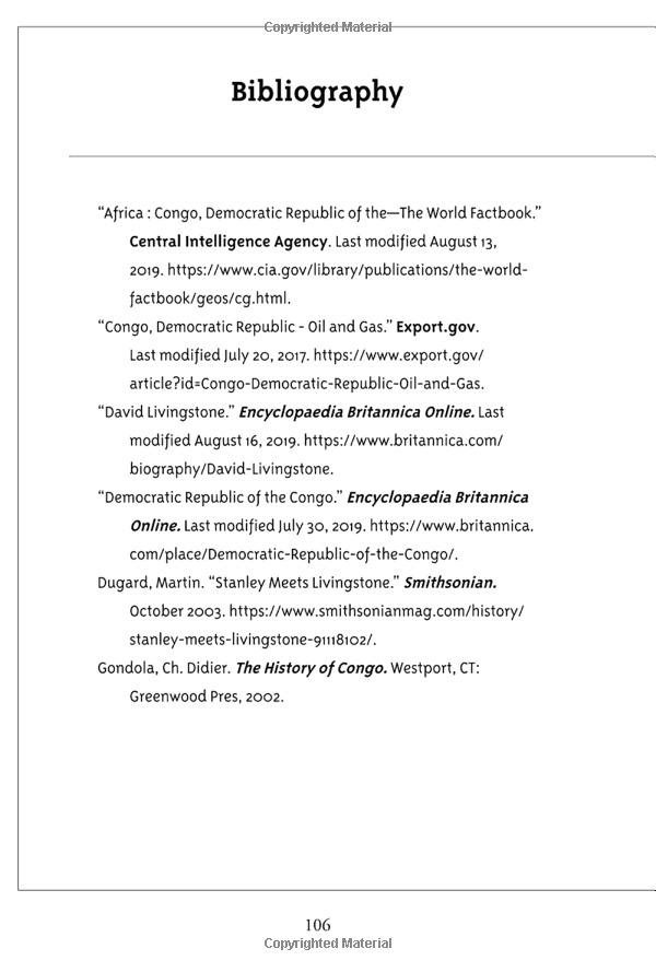 Running through six countries in the middle of Africa, the Congo Basin contains some of the largest tropical rain forests in the world. Dealing with present-day issues of climate change, it is home to bonobo apes, mountain gorillas, forest elephants, and more. With details about the exploration (and exploitation) by the European colonialists and the aftermath of their arrival in the Congo, this book will give readers a better understanding of the second largest rain forest in the world.