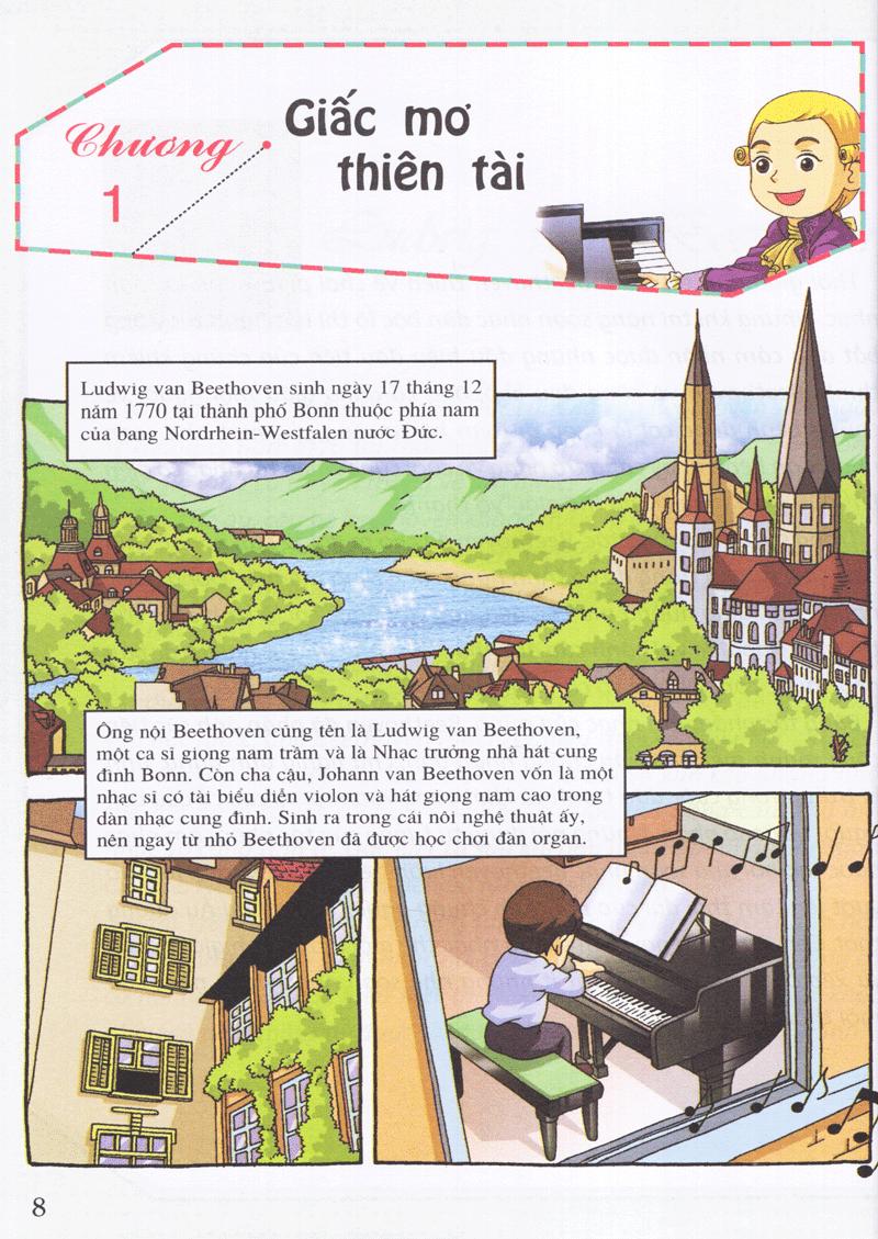 Ít ai biết rằng thiên tài âm nhạc Beethoven đã có tuổi thơ vất vả và luôn phải chịu sự dạy dỗ nghiêm khắc của người cha nghiện rượu như thế nào. Tuy nhiên, nhờ sự ép buộc luyện đàn của cha mà ngay từ bé Beethoven đã bộc lộ tài năng thiên bẩm về âm nhạc của mình. Khi đã trưởng thành, tưởng chừng tương lai tương sáng đang chờ đón phía trước thì bất hạnh thay, chứng bệnh điếc tai đã như một đòn chí mạng giáng xuống Beethoven. Nhưng nhà soạn nhạc thiên tài đã không chịu gục ngã trước số phận bi kịch. Chính tình yêu mãnh liệt dành cho âm nhạc đã giúp ông vượt qua và chiến thắng bệnh tật để cho ra đời những tác phẩm bất hủ. Cuốn sách sẽ giúp chúng ta thấu hiểu về những ngày tháng cơ cực, cay đắng như đầy niềm tin yêu cuộc sống và hoài bão cho tương lai của nhà soạn nhạc vĩ đại Ludwig van Beethoven.