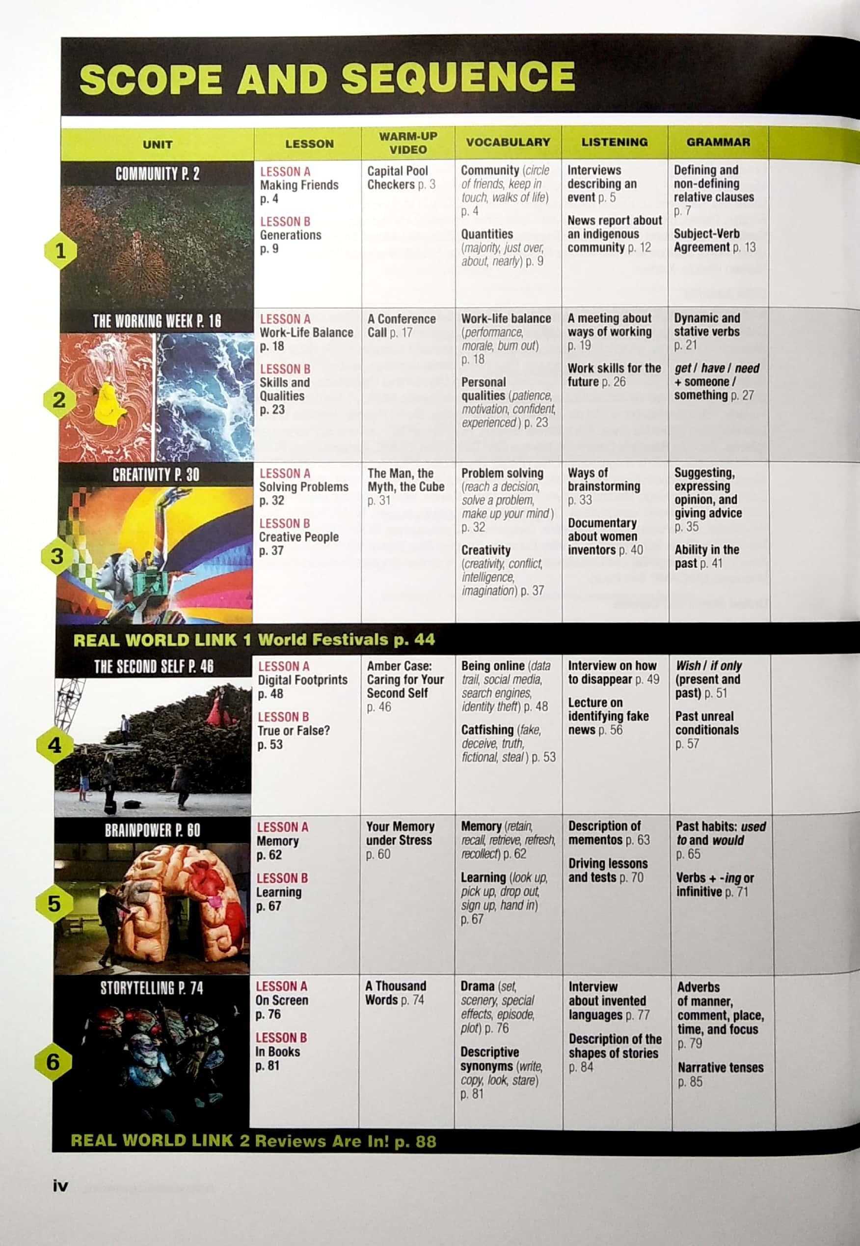 World Link, Fourth Edition teaches learners to communicate confidently. It develops integrated language skills with an emphasis on spoken English through familiar topics, relevant grammar, and essential vocabulary. World Link brings the world to the classroom through a famously fun video program, relatable National Geographic content, and teacher-tested lessons.