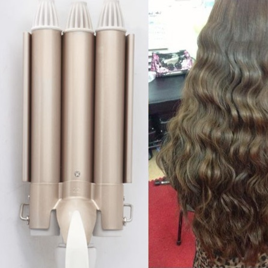 - Máy được thiết kế với 3 trục giúp bạn tạo những kiểu tóc xoăn sóng nước hay lăn tăn ở phần đuôi sẽ 1 cách dễ dàng và nhanh chóng hơn là những kiểu đang được nhiều chị em ưa chuộng.