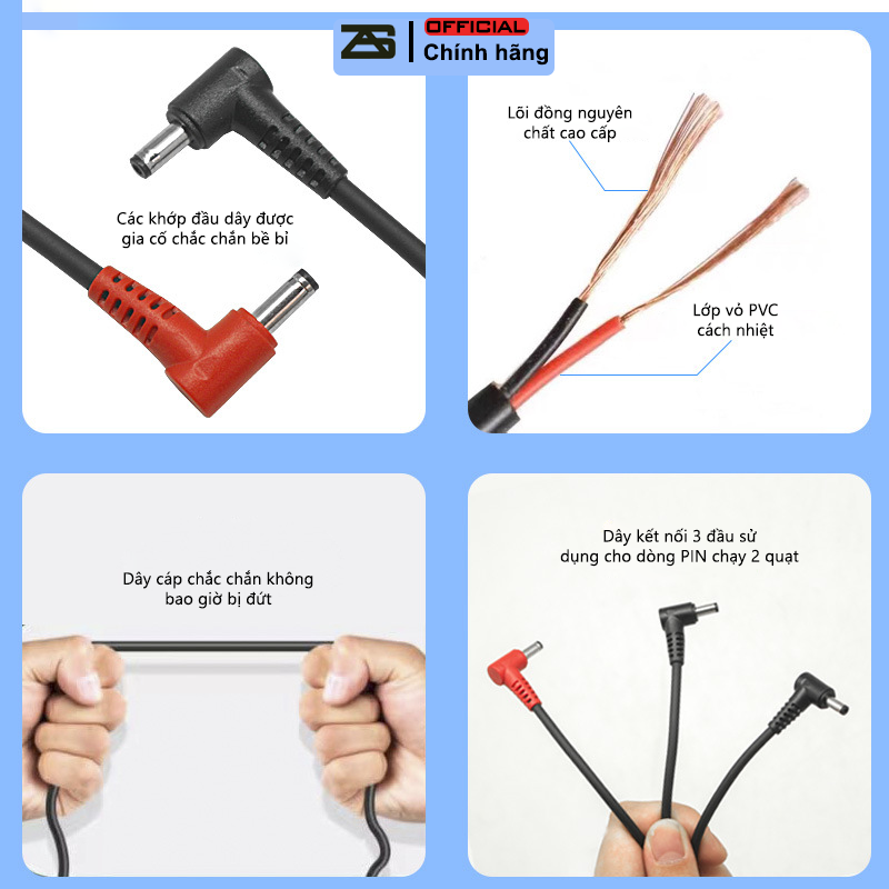 - PIN thương hiệu ZASKY là loại Pin LI-POLYMER, dòng pin có màn hình LED hiển thị cao cấp nhất hiện nay. Có 8 cấp độ gió từ số 1 - số 8. Số 1 mức quạt nhỏ nhất và số 8 mức quạt to nhất.