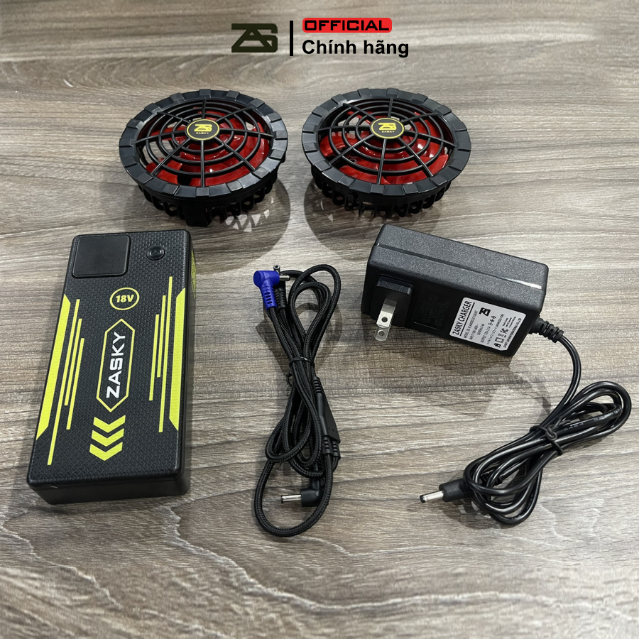 BỘ PHỤ KIỆN GẮN ÁO ĐIỀU HÒA ZASKY NHẬT BẢN 1 PIN + 2 QUẠT + 1 DÂY NỐI + 1 SẠC LÀ ĐƠN VỊ PHÂN PHỐI ĐẠT TIÊU CHUẨN PSE VỚI DÒNG PIN ZASKY