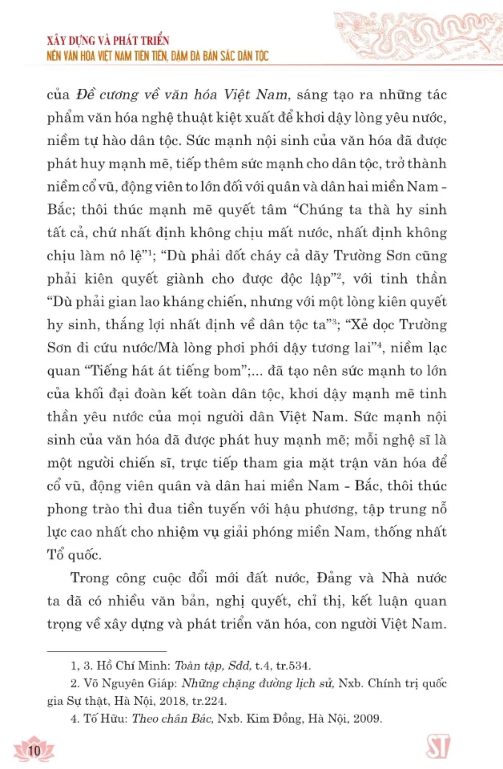 Nhằm hệ thống sự lãnh đạo, chỉ đạo của Đảng, đứng đầu là đồng chí Tổng Bí thư Nguyễn Phú Trọng, về xây dựng và phát triển nền văn hóa Việt Nam tiên tiến, đậm đà bản sắc dân tộc, giúp các ngành, các cấp, các địa phương, cán bộ, đảng viên, Nhân dân xác định rõ quan điểm, mục tiêu, định hướng, nhiệm vụ phát triển văn hóa, để văn hóa thực sự trở thành nền tảng tinh thần, động lực và nguồn lực nội sinh cho phát triển đất nước, Ban Tuyên giáo Trung ương chủ trì, phối hợp với Bộ Văn hóa, Thể thao và Du lịch, Nhà xuất bản Chính trị quốc gia Sự thật xuất bản cuốn sách Xây dựng và phát triển nền văn hóa Việt Nam tiên tiến, đậm đà bản sắc dân tộc của đồng chí Tổng Bí thư Nguyễn Phú Trọng.