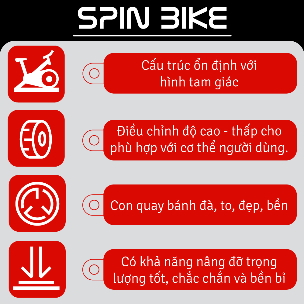 Trọng lượng tối đa người sử dụng: 125kg Cốt thanh tay cầm và yên xe bằng crom Màn hình LED hiển thị trực quan, dễ dàng quan sát Trang bị giá đựng chai nước và