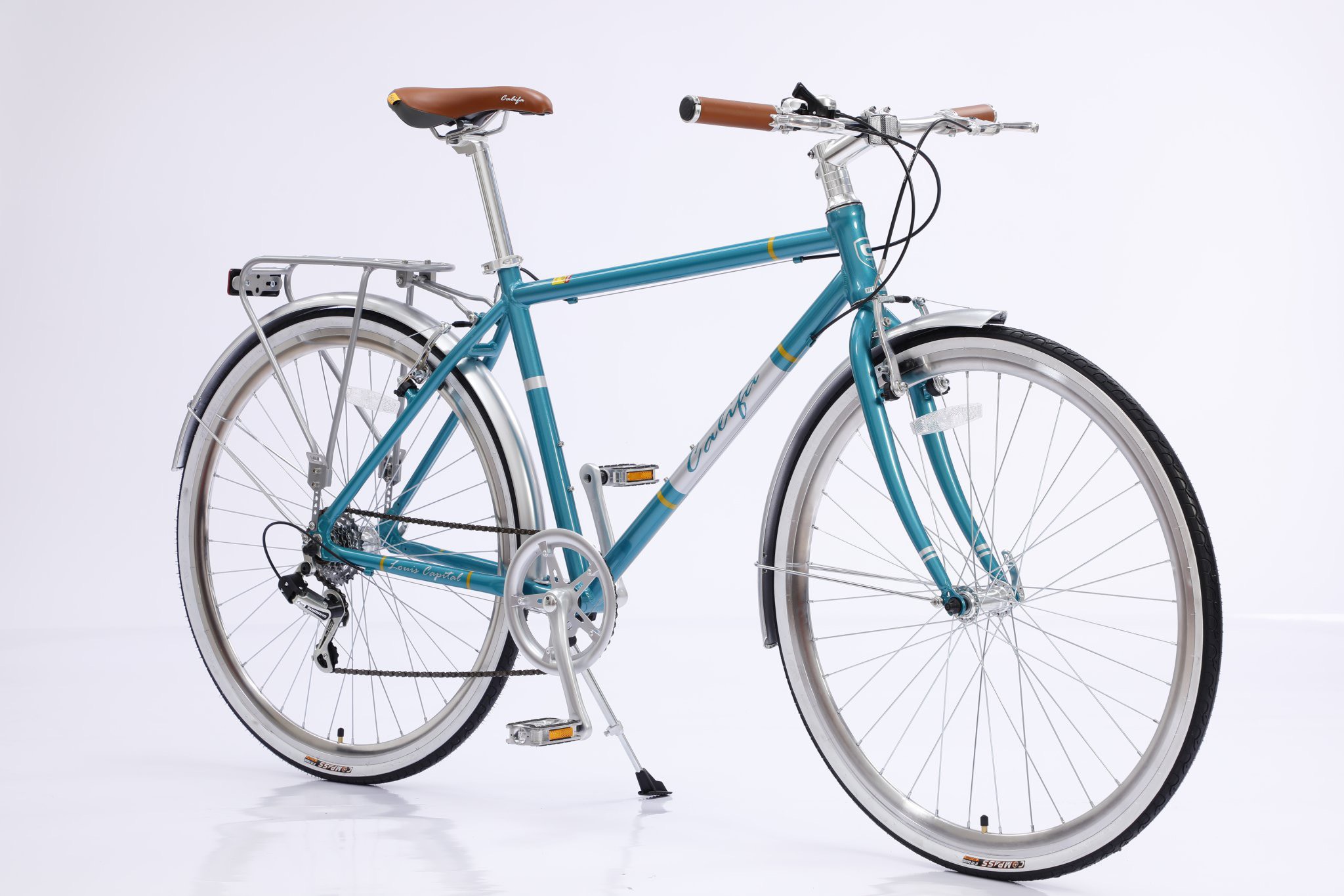 CALIFA Louis Capital Kết cấu khung nhôm cùng thiết kế nhỏ nhắn giúp xe linh hoạt khi di chuyển trong phố. Được trang bị bộ đề cho Shimano 7 tốc độ đem đến những chuyển biến linh hoạt và chính xác. Kích cỡ Size 700C Màu sắc xanh , trắng , đỏ , ghi xám Khung: Hợp kim nhôm Càng phuộc xe Phuộc thép Tay lái Nhôm Pô tăng Nhôm Cọc yên Nhôm Yên xe CALIFA Baga Thép Chắn bùn Thép Phanh Phanh đĩa Tay đề choSHIMANO 7 tốc độ Gạt líp choSHIMANO TOURNEY TZ Đùi đĩa 1 tầng nhôm Líp 7 tầng May ơ Bạc đạn Vành xe Vành hợp kim nhôm Lốp 700x32c