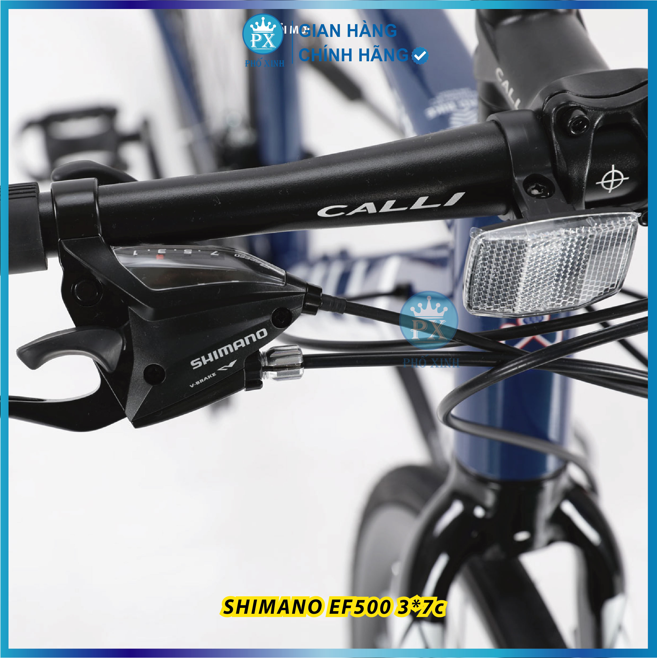 - Tay lái/Ghi-đông: Nhôm CALLI tay ngang