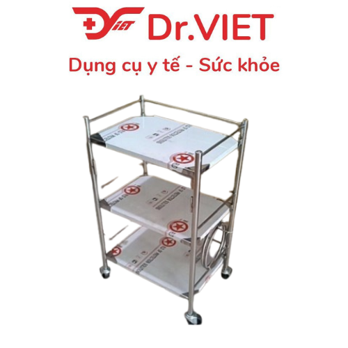 • Khung xe bằng inox hoặc thép sơn tĩnh điện chắc chắn, chống gỉ, chịu tải tốt. Ứng dụng: Thường dùng trong các phòng tiểu phẫu, phòng khám, spa, hoặc khu vực làm việc cần sự đơn giản, gọn nhẹ.