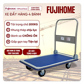 Xe đẩy hàng sàn thép 4 bánh FUJIHOME SH300, tải trọng 200kg Đây là dòng xe 4 bánh mới ra mắt với màu sắc kem/xanh bắt mắt phổ thông, chất liệu thép và mức độ