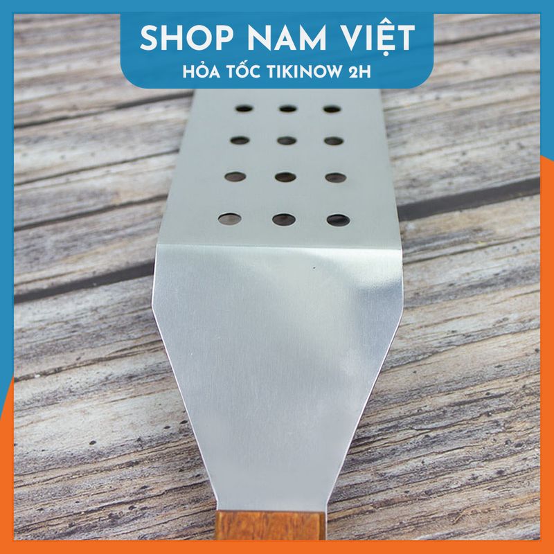 Kích thước: Ngang 7cm * Dài 23cm Chất liệu: Thép không rỉ chuyên dùng cho nấu nướng, không rỉ sét và chịu được nhiệt độ cao. Cán cầm bằng gỗ tự nhiên.