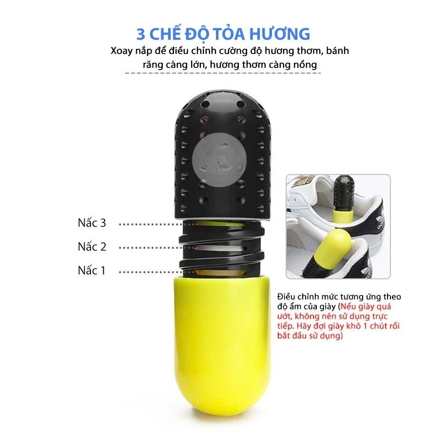 - Khử mùi giày, mùi hôi chân, mũ bảo hiểm, túi, giúp đôi chân thoáng mát, sảng khoái, ngăn ngừa vi khuẩn gây mùi ️ Hướng dẫn sử dụng: