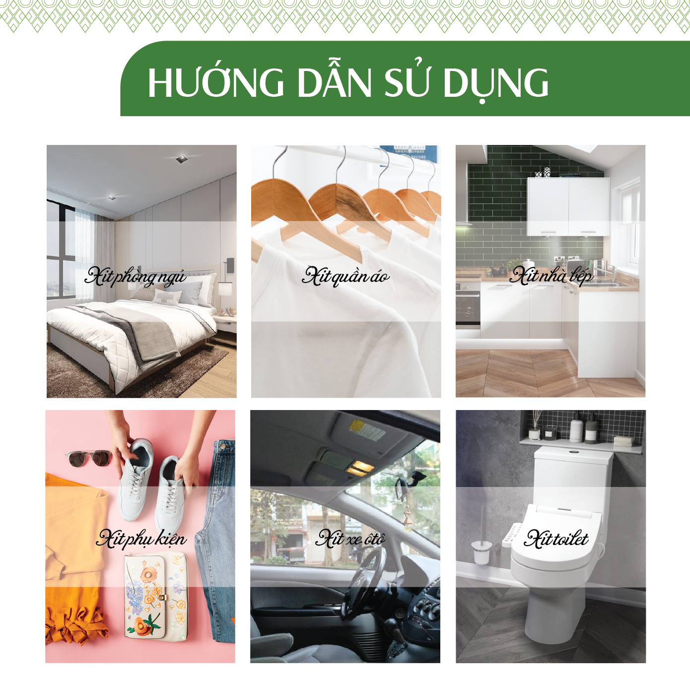 Công dụng: Chiết xuất tinh dầu tự nhiên mang đến hương thơm dịu nhẹ và giúp khử mùi; phù hợp để trong tủ quần áo, tủ giày, tủ sách, ô tô, va li, túi xách