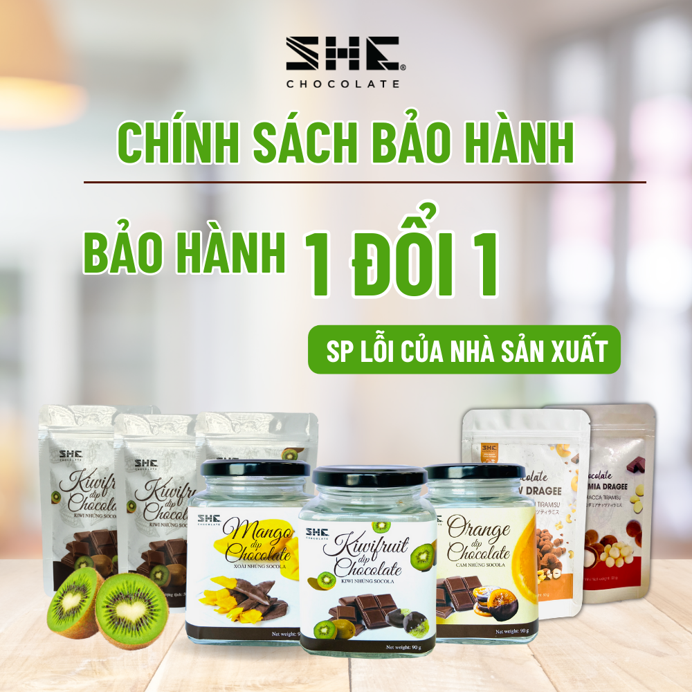 Xoài sấy dẻo nhúng socola SHE Chocolate Socola SHE được làm từ những quả cacao không phân bón và không thuốc bảo vệ thực vật, được chọn lọc rất kỹ từ những nông trại hàng