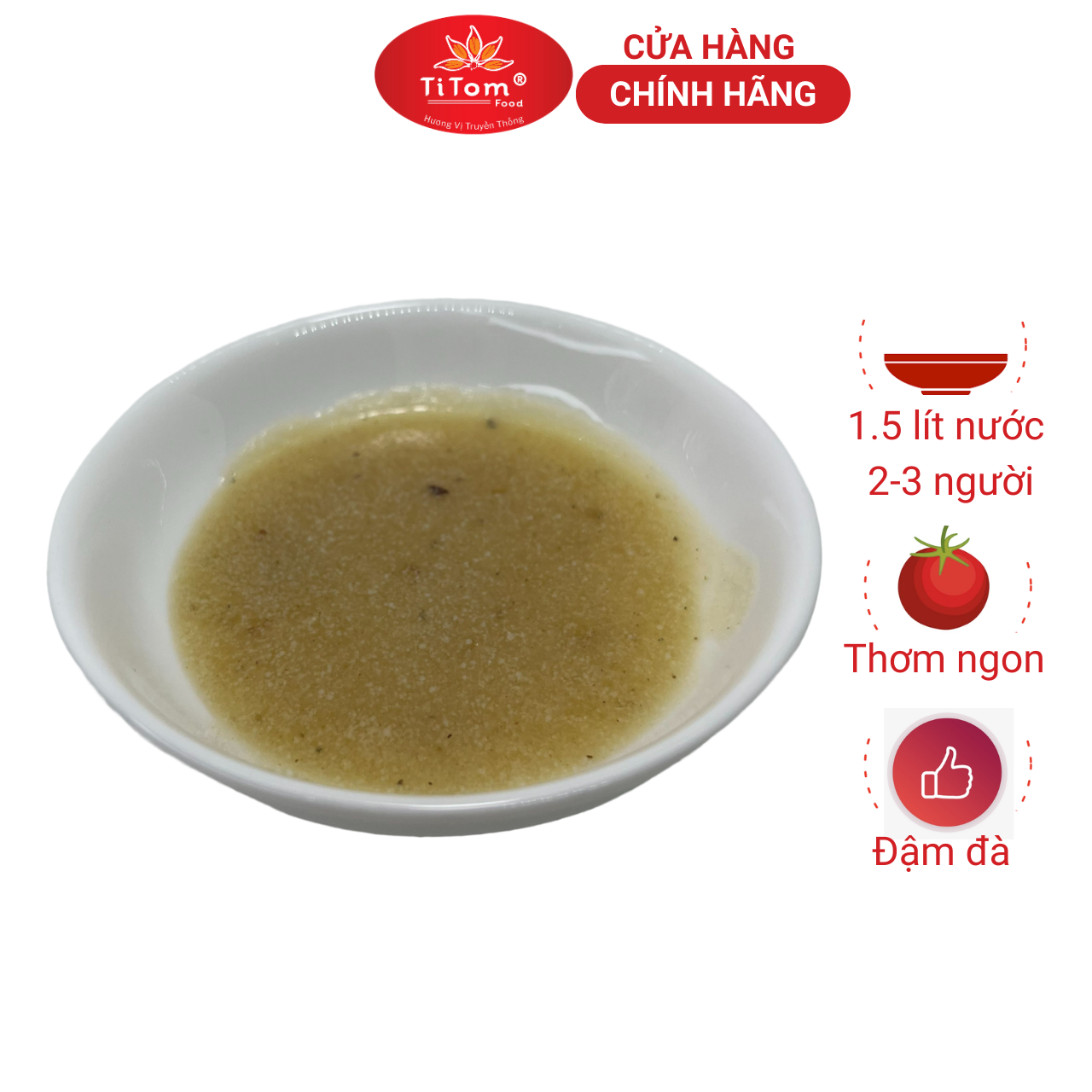 -Xốt hủ tiếu Titom là gia vị nấu hủ tiếu nêm sẵn hoàn chỉnh dùng nấu nước lèo hủ tiếu, cho bạn một nồi nước dùng hủ tiếu thơm ngon chuẩn vị, không cần nêm nếm.