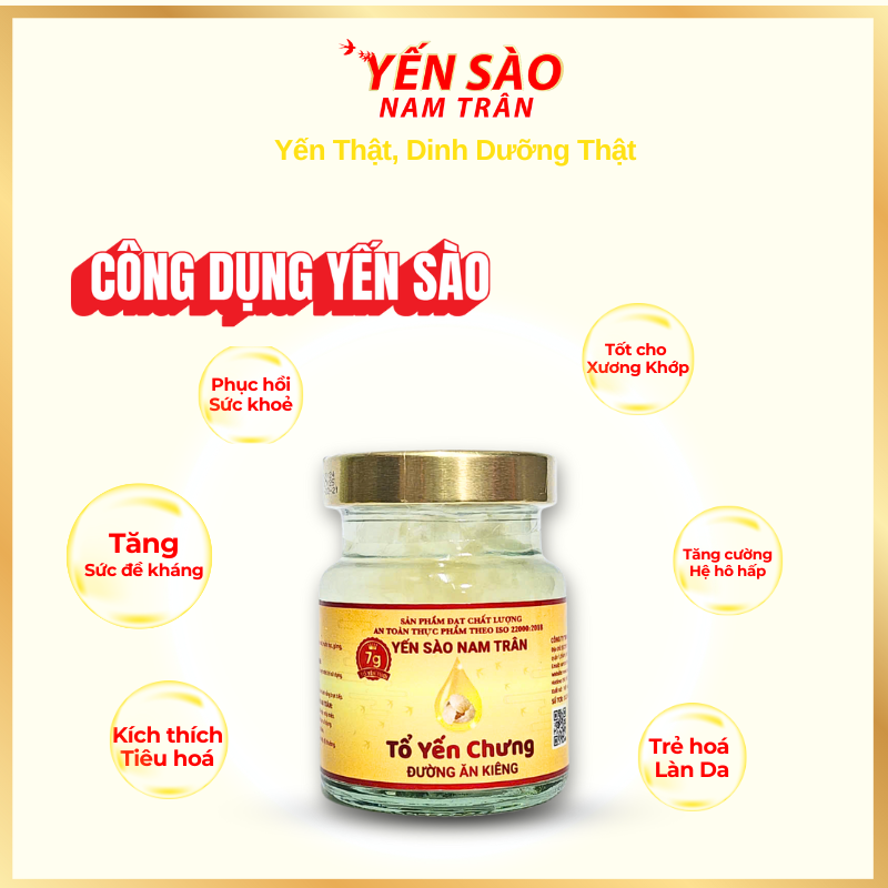 ✨Yến sào chưng sẵn Đường Ăn Kiêng NAM TRÂN 7 gram Tổ Yến Tươi phù hợp với người kiêng đường. Lọ 70 ml