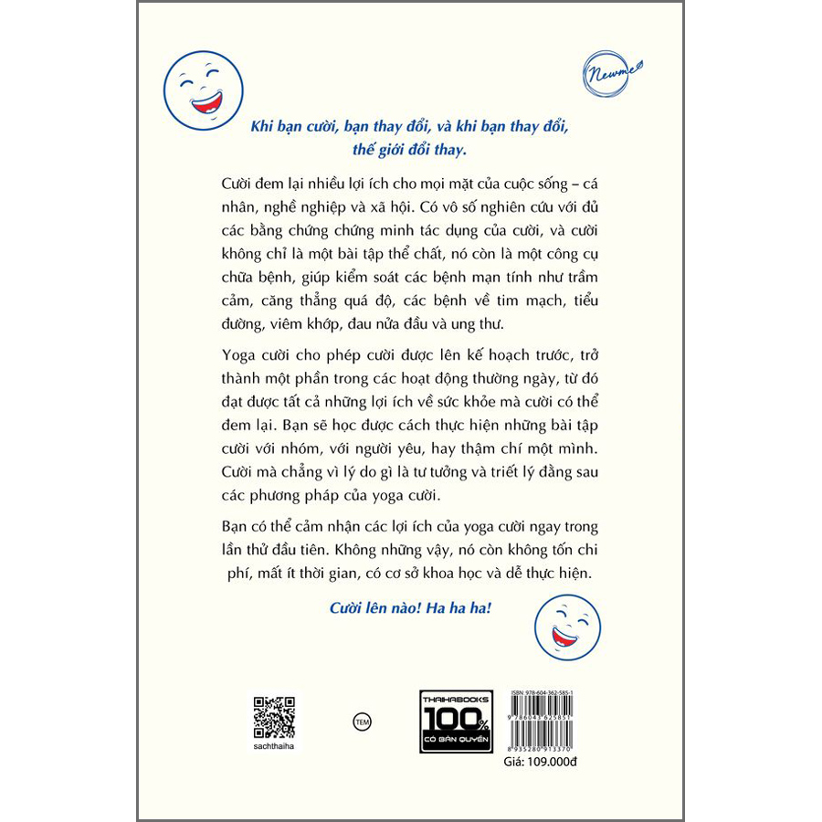 Cuốn sách bao gồm các bài tập kết hợp tiếng cười tự nhiên với hơi thở yoga để giúp rèn luyện toàn bộ cơ thể và tinh thần. Cuốn sách chứng minh tiếng cười là cách nhanh nhất để giảm căng thẳng và rất tốt cho tim mạch: 10 phút cười sảng khoái tương đương với 30 phút chèo thuyền.
