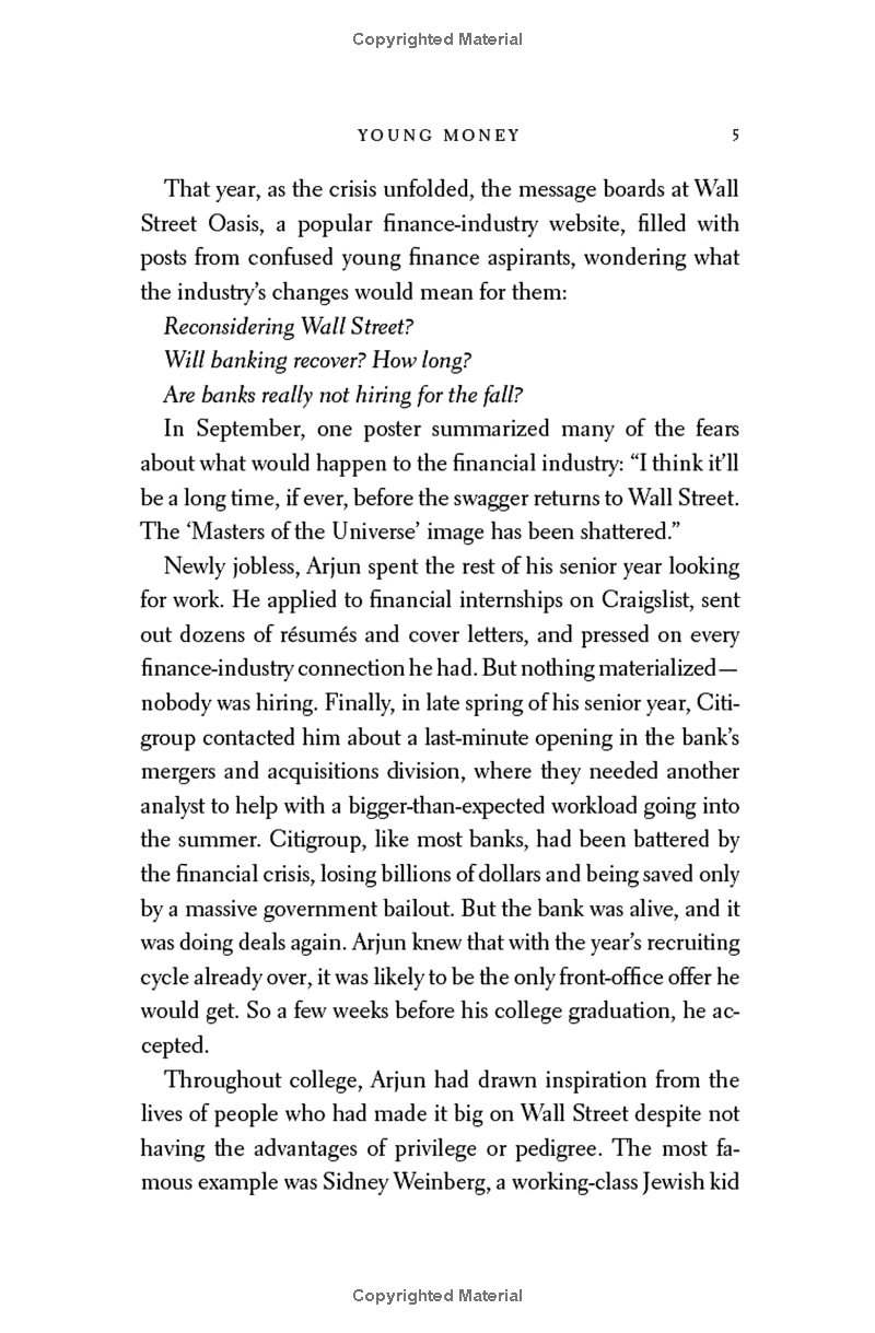 Roose's young bankers are exposed to the exhausting workloads, huge bonuses, and recreational drugs that have always characterized Wall Street life. But they experience something new, too: an industry forever changed by the massive financial collapse of 2008. And as they get their Wall Street educations, they face hard questions about morality, prestige, and the value of their work.